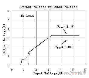 由此得出低压差线性稳压器(LDO)的一个重要特性,在输入电压大于最小工作电压和输出电压其标称值范围内,负载电流为零时,输出电压随输入电压的变化而变化,这就是LDO的跟随特性,待输出电压达到其标称值后不随输入而变化,从而达到稳压的目的,这就是LDO的稳压特性。如图为圣邦微电子的SGM2007输入电压和输出电压的曲线。