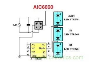 后来美国的Supertex公司也开发了一个可接通4串LED的CL8801。采用4串以后PF可以达到0.98,谐波失真也可以小于20%。它的框图如图五所示。