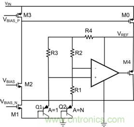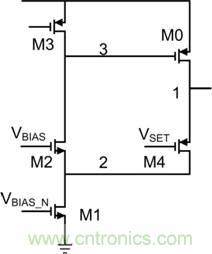 因此,输出电压对温度和工艺变化极为敏感。要避免这种问题,就必须创建一个更为理想的跟随器,其中 M4 是反馈环路的一部分(图3)。