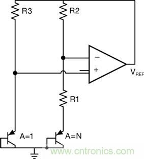 电阻器R2和R3分别可确定通过Q1和Q2 的电流值。R2和R3的变化可导致参考电压(公式5)的正温度系数不准确。不过,可通过对电阻器R2与R3进行良好匹配来降低该变化所引起的误差。