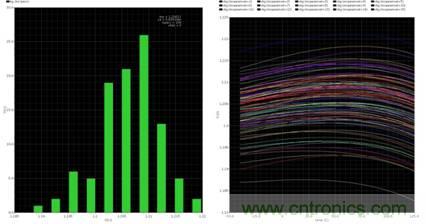 所推荐带隙参考不仅可用于超低噪声、高PSRR的低压降稳压器,而且还可采用CMOS 9T5V 技术实施。PSRR值如图8所示,输出电压精度的蒙特卡洛温度变化仿真结果如图9所示。测量结果请参见表1。