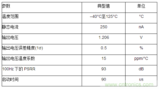 上述电压参考在低频率下支持90dB。输出电压变化的标准偏差是 0.5%,在–40℃至125℃温度范围内的温度系数为15ppm/℃。这些特性可在1.6V至5.5V的电源电压范围内实现??墒凳└髦钟糜谖缪共慰际迪质淙朐肷谷哦鹊姆椒?。