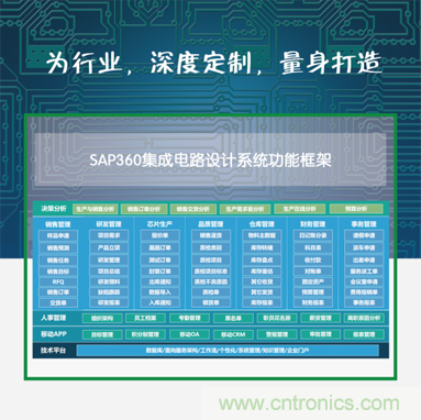 为此,深圳市思普达软件系统股份有限公司(以下简称“思普达”)针对集成电路设计企业带来全球首创的系统管理软件。这是一款从电脑到手机皆互联互通的全方位管理系统(SAP360),基于世界一流的SAP系统,具有先进的管理理念和一流的信息技术支撑。本套软件已为上海、深圳、苏州等地的多家知名IC设计企业带来显著的管理提升和市场竞争优势的确立。