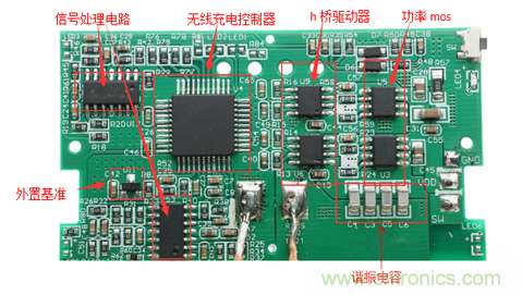 这种SoC方案下,PCB上只有一颗大芯片,和两个MOS管,相当简洁。SOC内部集成了无线充电驱动,H桥驱动器,运放,内置温度?;すδ艿?,一颗芯片实现所有功能,可有效控制成本和精简生产流程。