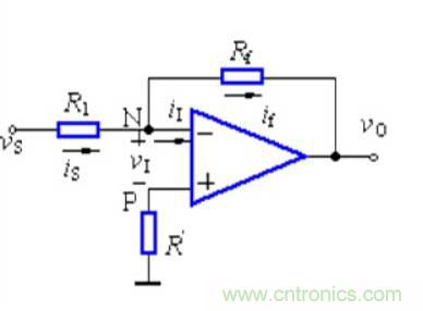 下面本文用虚断和虚断方法来对实际的电路进行分析,如图1-1所示,是常见的反相比例运算放大电路: