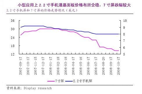 图3:小型应用上2.2寸手机液晶面板价格有所企稳,7寸屏跌幅较大。