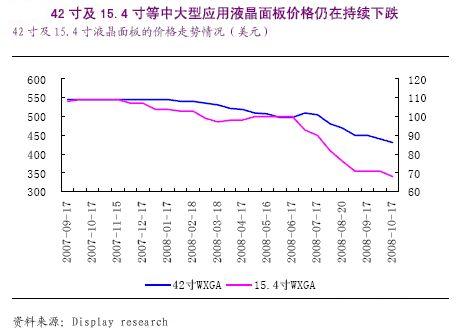 图4:42寸和15.4寸等中大型应用液晶面板价格仍在持续下跌。