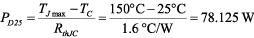 在与MOSFET SOA图进行比较之前,我们需要考虑MOSFET的温度降额,因为SOA是以室温(TC = 25°C)下的数据为基础的。首先计算TC = 25°C下的功耗: