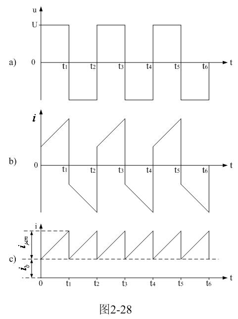图2-28是图2-27电路中变压器初级线圈两端电压、电流以及取样电阻上的电压波形图。图2-28-a是变压器初级线圈两端的电压波形;图2-28-b是流过变压器初级线圈两端的电流波形;图2-28-c是取样电阻两端的电压波形。