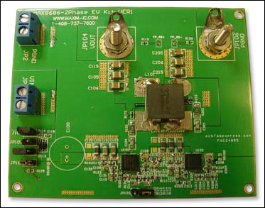 图2. 原型电路板包含两片MAX8686 PWM控制器和一组耦合线圈,每路输出可提供1.2V、最大50A电流。