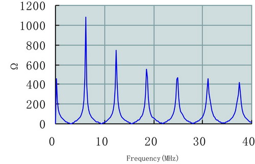 研究信道阻抗特性的目的主要是为了实现信道与发射机、接收机之间的阻抗匹配,当阻抗失配时,将造成信号能量的浪费,甚至出现哑信号点。由于中压配电网的分支多,负载情况复杂,线路阻抗会随距离、频率、时间而变化,且变化范围大,一般在几十欧~几百欧之间,图2即为中压电力线阻抗特性随频率变化曲线。故在实现宽带网络接入时,阻抗匹配比较困难;目前,通常采用在耦合技术中通过牺牲匹配性能来适合线路侧宽范围内阻抗的方法,也有系统在发射机端采用阻抗自适应的功率放大设备等,以达到较好的阻抗匹配效果。