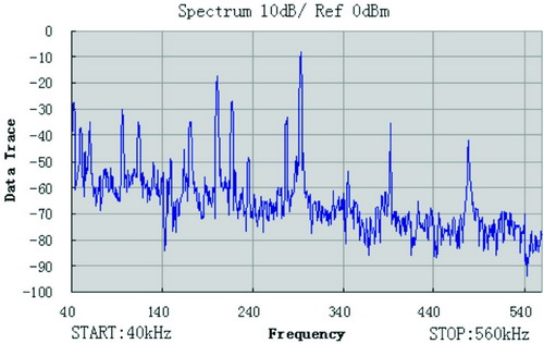 图3国内农村中压线路噪声特性曲线(40k-560kHz)