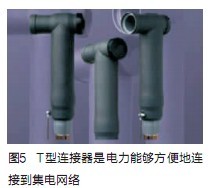 多数电力传输连接器采用直线型连接或T型连接(如图5)。由于集电网络位于地下,可靠性尤为重要。与机舱的机械部件需要耐磨与精密电子等需求不同,集电网络不像涡轮机那样需要连接提供高速及简便维护性。安装完毕后,集电网络将工作多年。而集电网络的故障将导致许多发电机停机。同样,集电网络到变电站的连接故障将导致整个风力发电站瘫痪。