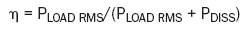 [page]这符合PLOADPEAK=I2PEAKRL=49W/通道的输出峰值功率,和PLOADRMS=PLOADPEAK/2=24.5W/通道的RMS输出功率。采用效率公式: