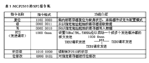 MCP2510在SCK下降沿通过SO引脚发送表1列出了所有操作的指令字节。