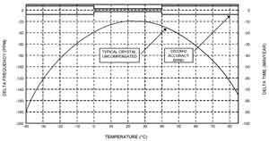 消除温度对精度影响的唯一途径是提供实时的温度补偿。校准程序要准确测量晶体/振荡器随温度的变化情况,并存储结果。然后按照一定的时间间隔测量晶体温度,利用存储的校准信息调节温度效应。[page]