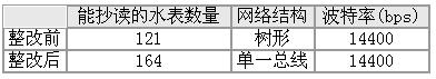 (1)网络布局不合理。这时的结构近似树形,但RS-485总线不支持环形或星形网络。同时,由于总线的不同区段采用了不同电缆,某一段总线上有过多收发器紧靠在一起安装,或者是有过长的分支线引出总线,都会出现阻抗不连续点。所以应该提供一条单一连续的信号通道作为总线。根据这一原则对网络进行了大的整改,采用单一总线将各个节点串接起来,同时进行接地处理,如图2所示。再次集抄的结果比先前要好,但还是有部分水表抄读不到或数据不稳定,未达到预期效果。表1是整改前后水表抄读的情况。