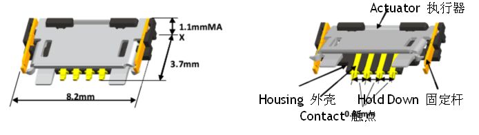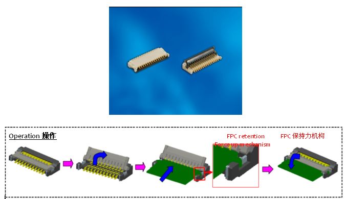 0.2毫米间距,0.9毫米高度FPC 零插入力连接器