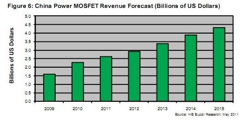 - 2010-2015年中国功率MOSFET市场总体复合年增长为13.7%