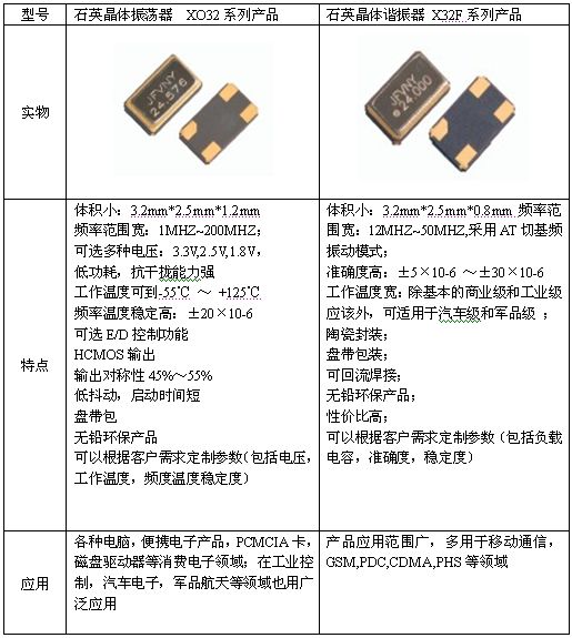 通信、军工航天等行业对可靠性的要求十分严格,北京晶宇兴科技有限公司不仅紧盯“可靠性”这一特性,另一个突出的特点是小型化,其研发的石英晶体振荡器根据应用高度可控制小到1mm以内,下表是其将在专区推出的新品及其特点: