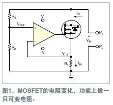 其中,k=(R2+R3)/R2是一个大于1的因数,它乘以R1.改变R2或R3变量,可以使电路成为一只可变电阻。采用适当的晶体管与R1,再加上剩余的元件,其成本也小于一只可变电位计,而功耗差不多。