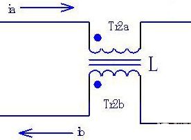 图1所示的是共模电感的滤波电路,Tr2a和Tr2b就是共模电感L的两个线圈。这两个线圈绕在同一磁芯上,匝数和相位都相同。这样,当电路中流过电流ia和ib的大小相同、方向相反时,电流在同相位绕制的电感线圈中产生反向的磁场而相互抵消,磁芯中没有交变的磁通量产生。