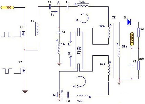 当灯管正常工作时,灯管两侧的电路完全对称,下列关系式成立。