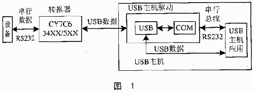 主机必须能够通过设备驱动接收USB数据,并且使这些数据对处理这些请求的应用程序有效。在主机中必须有一个驱动负责处理USB传输、辨识设备、向USB设备收发数据;同时,还需要有一个设备驱动-虚拟化串行口,仿效真实的串口。这个驱动必须能够像真实的串口接收和发送USB数据。