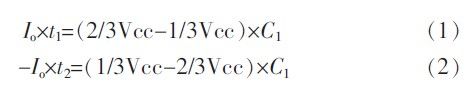 三角波频率、幅值计算如下:记通过电阻R1、R2的充放电电流为Io,此处Io=Vbe/R(其中Vbe为三极管的导通电压),则有