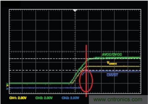 图1. 在电源上升时拉高CNVST可能导致未知状态