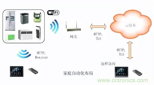 从上图可看出,家庭自动化系统将嵌入式微控制器技术、无线连接、接入网络融合为一体。Apps软件能够使用户发现家里的设备,予以设置,或者创建一个动作加以控制。