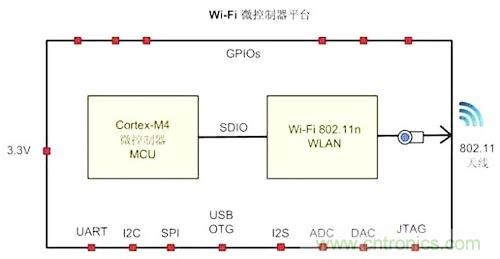 微控制器是家居智能化的关键部件。MCU和Wi-Fi是最基本的两个元素。以某一Wi-Fi微控制器为例,它是内置全功能微控制器的单芯片SoC,支持802.11n Wi-Fi。
