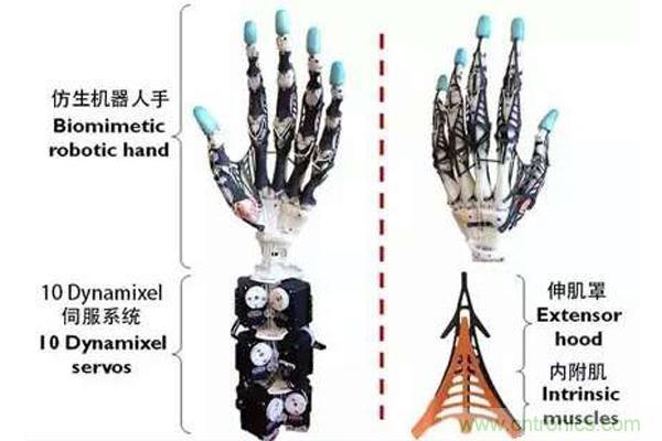「拟人机器手设计的常规方法是,用类似铰链、联动装置和平衡环等零件来实现生物部件的机械化,从而将看似复杂的人体参照物进行了简化。这种方法对于理解并模仿人手的运动原理有一定帮助,但不可避免的制造了一些人与机械手之间的不良差异,因为人手上大多数显著的生物力学特征都在机械化的过程中被丢弃了。这些机器手和人手生物力学在本质上的不匹配阻碍了我们使用自然的手部运动来直接控制它们。因此,还没有任何一只拟人机器人手可以达到人手的灵巧程度?!?/div>