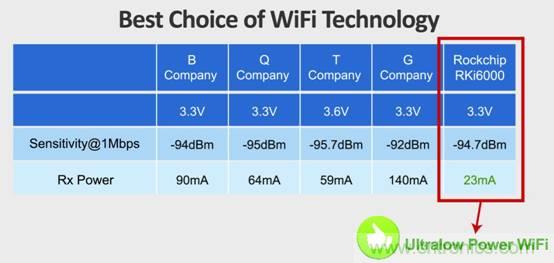 低功耗WiFi已成为IoT物联网核心因素,瑞芯微Rockchip去年宣布推出全球最低功耗WiFi RKi6000,该技术使WiFi功耗与BT4.0 LE(Low Energy)蓝牙低功耗相当。可覆盖智能家居、主流家电、家庭控制中心,甚至医疗、交通、军事等领域。该革命性低功耗WiFi方案引发了业界极大关注。