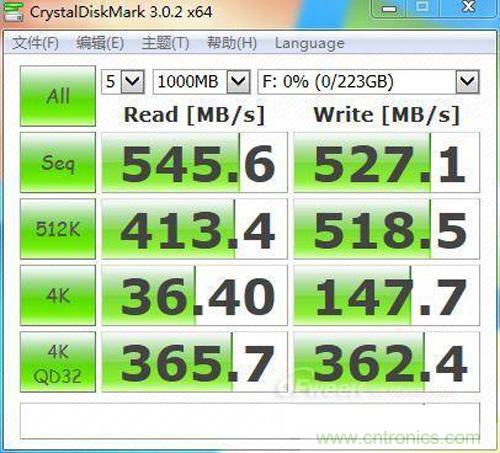 HyperX Savage 240G SSD接在原生的SATA3.0接口上的测试成绩完胜SATA2.0。在SATA2.0接口上,持续读写速度仅270 MB/s / 264MB/s,而相对的,SATA3.0高达545 MB/s /527MB/s,很明显受到接口理论传输性能的限制。另外,4K随机读写方面也受到不少的影响。