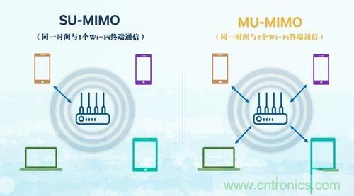 但MIMO(也称SU-MIMO,即单用户多输入多输出)也有自己的缺陷——会产生MIMO间隙。简单来说就是目前我们熟悉的无线路由/AP大都有3-4根天线,但WiFi终端通常只有1-2根天线。而采用MIMO技术的无线路由/AP同一时间只能与1个WiFi终端建立连接和通讯,因此WiFi终端很难全部占用所有传输信道,即无法占满无线路由/AP的全部容量,这种差异就被称为MIMO间隙。