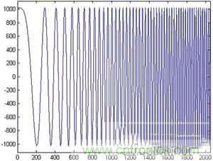 经过频率累加器输出的是严格线性增长的瞬时频率。在实际过程中,相位累加器的输出是经过相位截断再进行寻址,从而引入了一定的相位误差,虽然这一误差会影响到线性调频信号的线性度,但是调频斜率为相位的二次导数,相位截断误差本身已很小,所以对调频线性度的影响就更小了。在本文的Matlab实现中暂时不考虑截断问题,忽略不计。