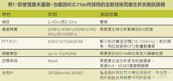 表1:即使是基本量测,也会因802.11ax所采用的全新技术而产生许多测试挑战