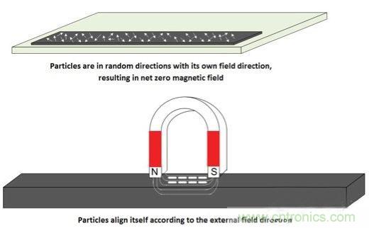 图1:在外部磁场的影响下磁化材料按特定方向排列
