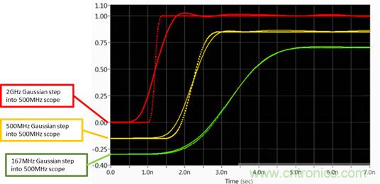 图2:500MHz带宽示波器对于不同阶跃响应的曲线