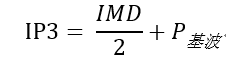 实际上,IP3/TOI是计算所得而非测量所得的结果。一阶产物和三阶产物之间的功率增加比是3:1,利用以下公式可以计算出IP3。