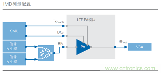 图7: IMD测量需要连接至功率组合器的两个信号产生器