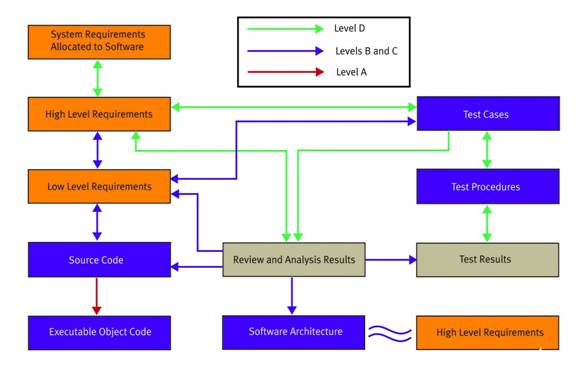 需求可追溯性工具允许团队处理单个活动,并将代码和验证工件链接回更高级别的目标。在双向需求可追溯性的监督下,在开发过程的早期和连续阶段应用了三个主要功能。这些是静态分析,功能测试和结构覆盖分析的动态分析以及单元/集成测试。后者在开发过程的早期应用静态和动态分析,也适用于后期集成的代码。
