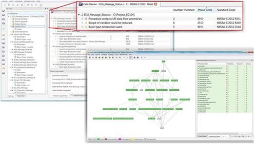 在静态分析方面,这些工具使用未编译的源代码来检查代码的各种质量指标,例如复杂性,清晰度和可维护性。静态分析还可用于根据选定的编码规则检查代码,这些规则可以是支持的编码标准(如MISRA C或CERT C)的任意组合,以及开发人员或公司可能指定的任何自定义规则和要求。这些工具寻找可能危及安全性的软件构造,并检查内存?;ひ匀范ㄋ腥ǚ梦誓男┠诖娌⒏倏赡鼙槔诖嫖恢玫闹刚?。理想情况下,结果应以图形屏幕显示,以便于评估结果,以确保代码干净、一致且可维护,并符合编码标准(图 2)。