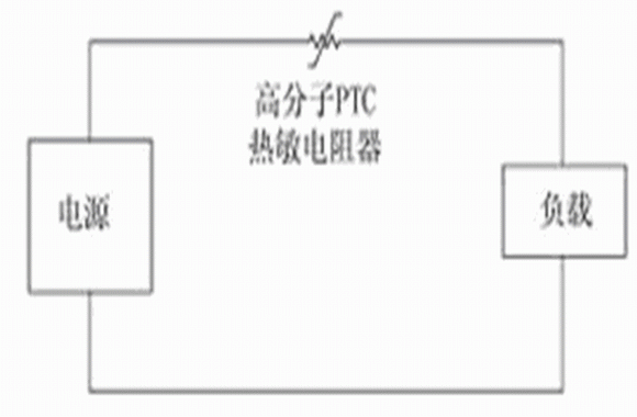 高分子PTC热敏电阻又经常被人们称为自恢复保险丝(下面简称为热敏电阻),由于具有独特的正温度系数电阻特性(即PTC特性,如图1所示),因而极为适合用作过流保护器件。热敏电阻的使用方法象普通保险丝一样,是串联在电路中使用,如图2所示。