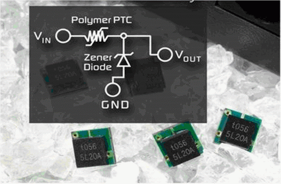 对于电感性电压尖脉冲的箝位和平滑,PolyZen器件特别有效。在出现电感性尖脉冲时,齐纳二极管把电流旁路到地,直到电压降低到正常的工作范围。在供电电压出错的情况下,PolyZen器件对电压进行箝位,把过大的电流旁路到地,防止电源的错误造成影响。PolyZen器件的电压与电流响应特性比较平坦,有利于对输出电压进行箝位,即使输入电压和电源电流变化的情况下也能做到这点。