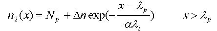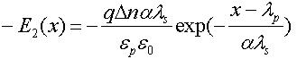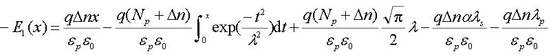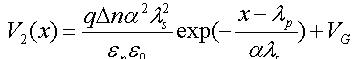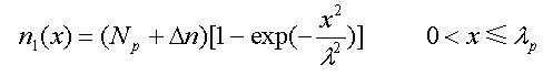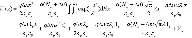 本文采用电子分布曲线拟合近似,设多晶硅/二氧化硅界面处为0=x点,向上为正,峰值处的点的坐标为,分别用以下分布来近似上升和下降阶段的载流子分布: