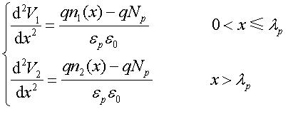 由式(1)、(2)可得,电子浓度分布下多晶硅中的泊松方程为: