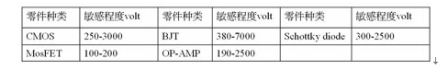表1 几种不同类型器件的静电敏感程度