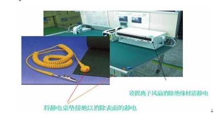 图2 使用离子风扇并将静电桌布接地以避免ESD